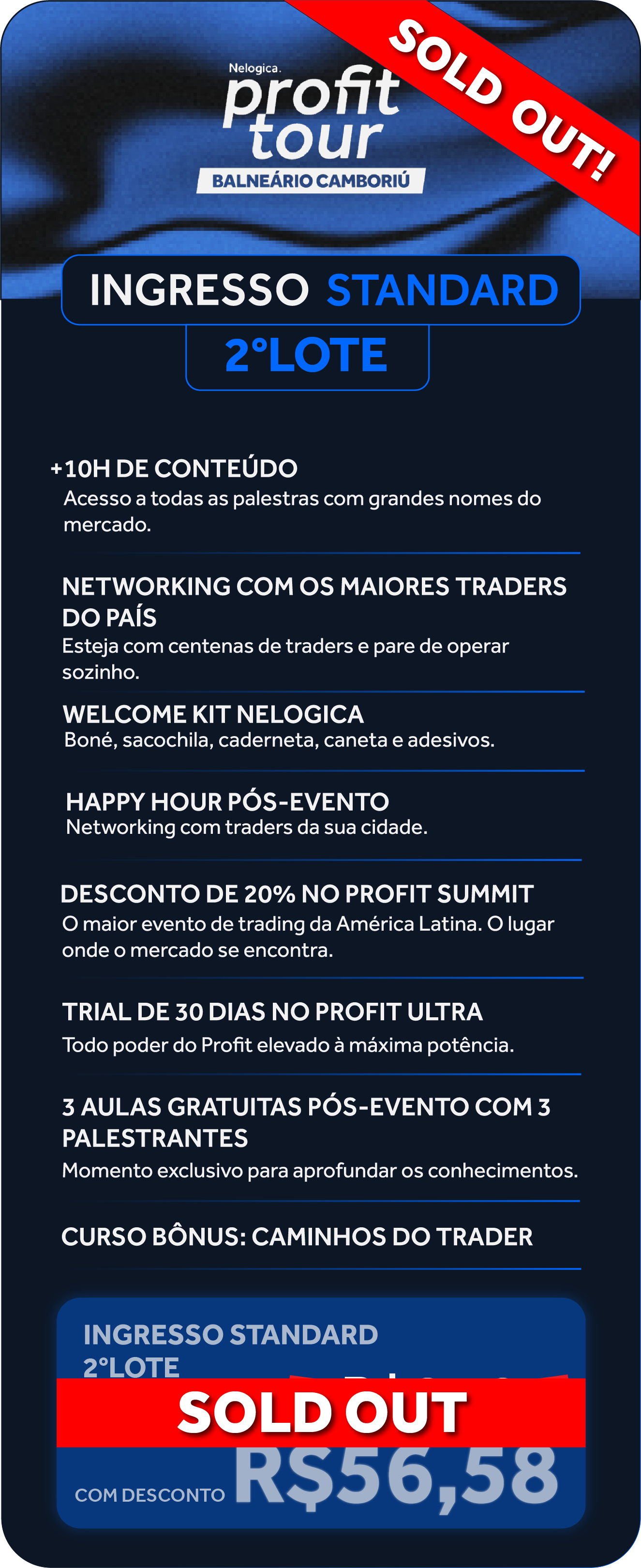 Ao prosseguir com a compra dos ingressos, você fica ciente e concorda com os termos da Política de Privacidade da Nelogica e aceita compartilhar seus dados com a Nelogica e parceiros de negócios.