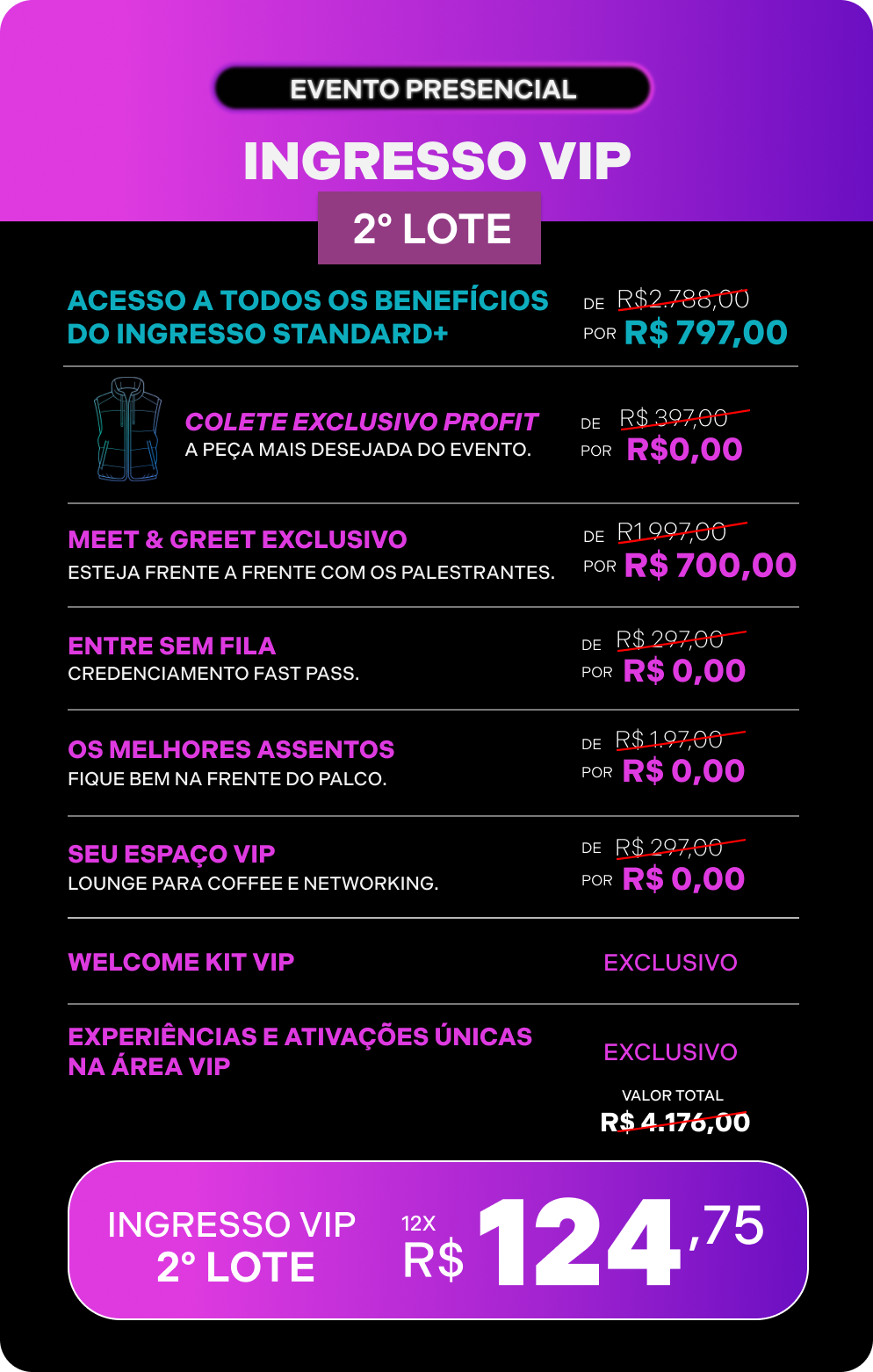 Após a confirmação do pagamento, você receberá um e-mail de confirmação com todos os detalhes da compra e as instruções para acesso ao evento.