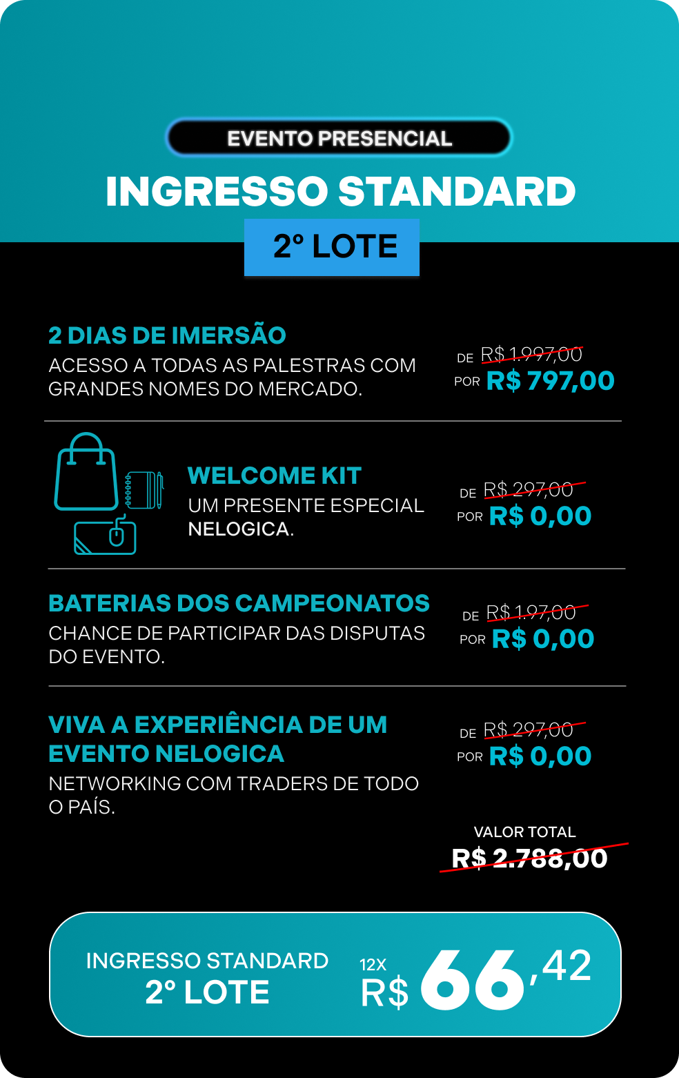 Ao prosseguir com a compra dos ingressos, você fica ciente e concorda com os termos da Política de Privacidade da Nelogica e aceita compartilhar seus dados com a Nelogica e parceiros de negócios.”