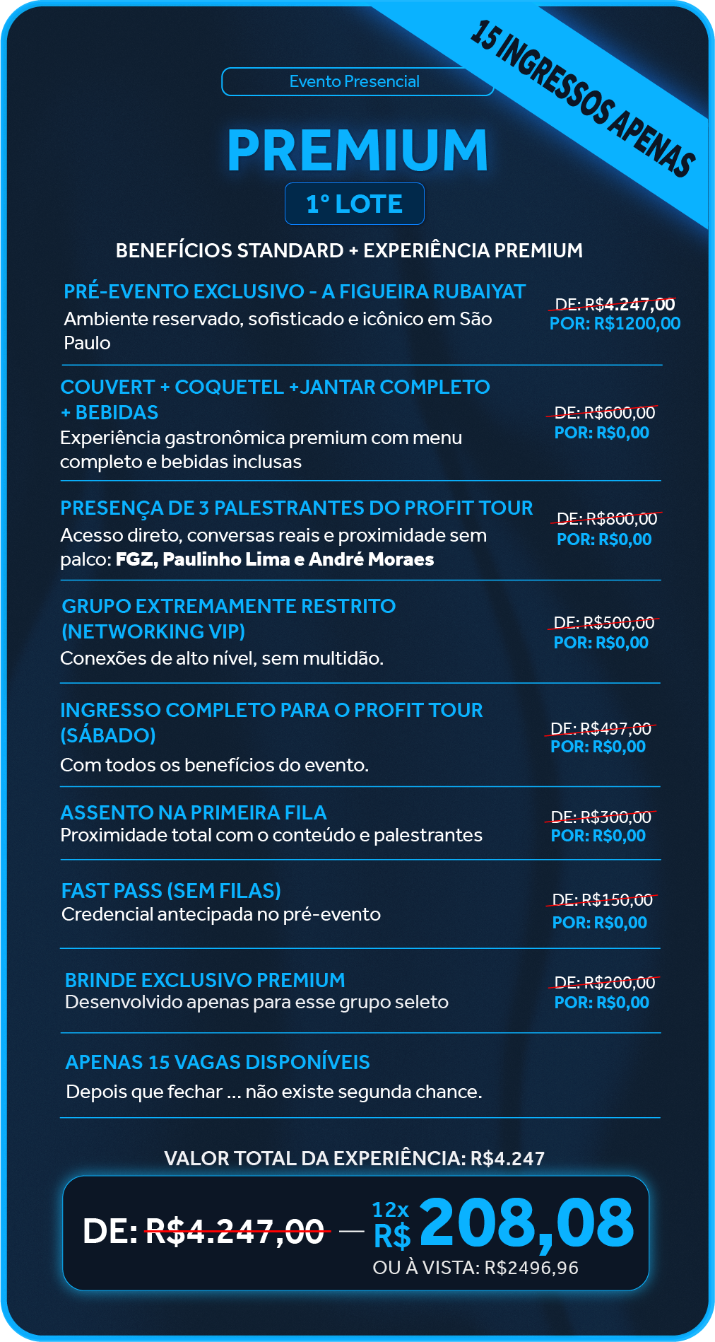 Mais que um jantar, o início do Profit Tour para quem entende que acesso é vantagem.