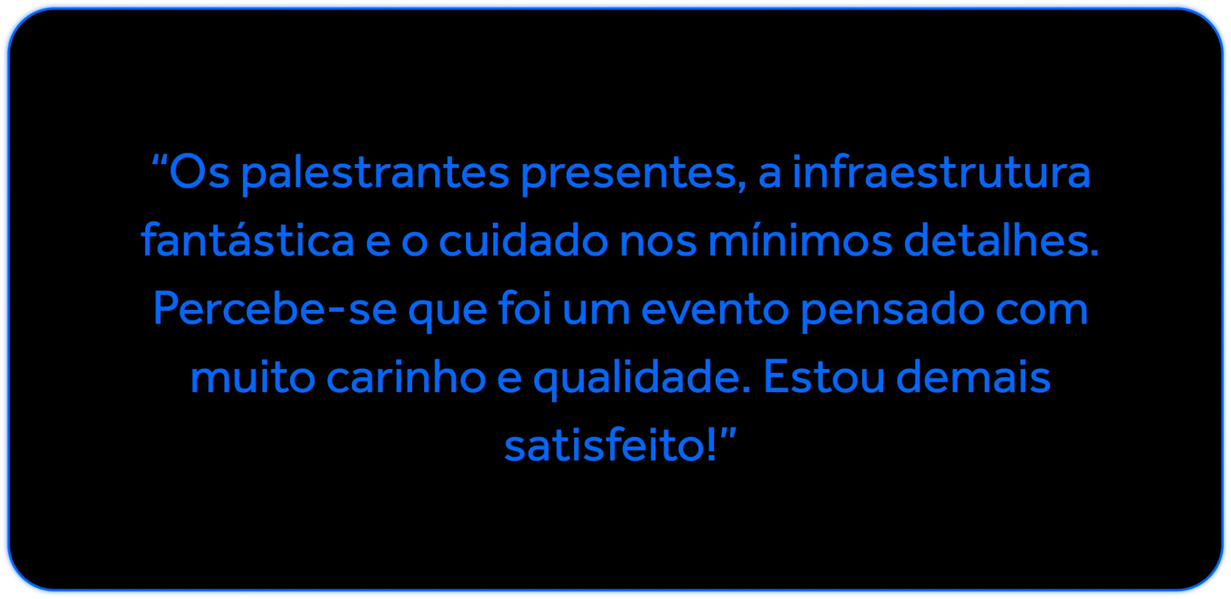 À mesa, você estará ao lado dos principais nomes do evento, em um contexto raro: direto, acessível e sem intermediários.